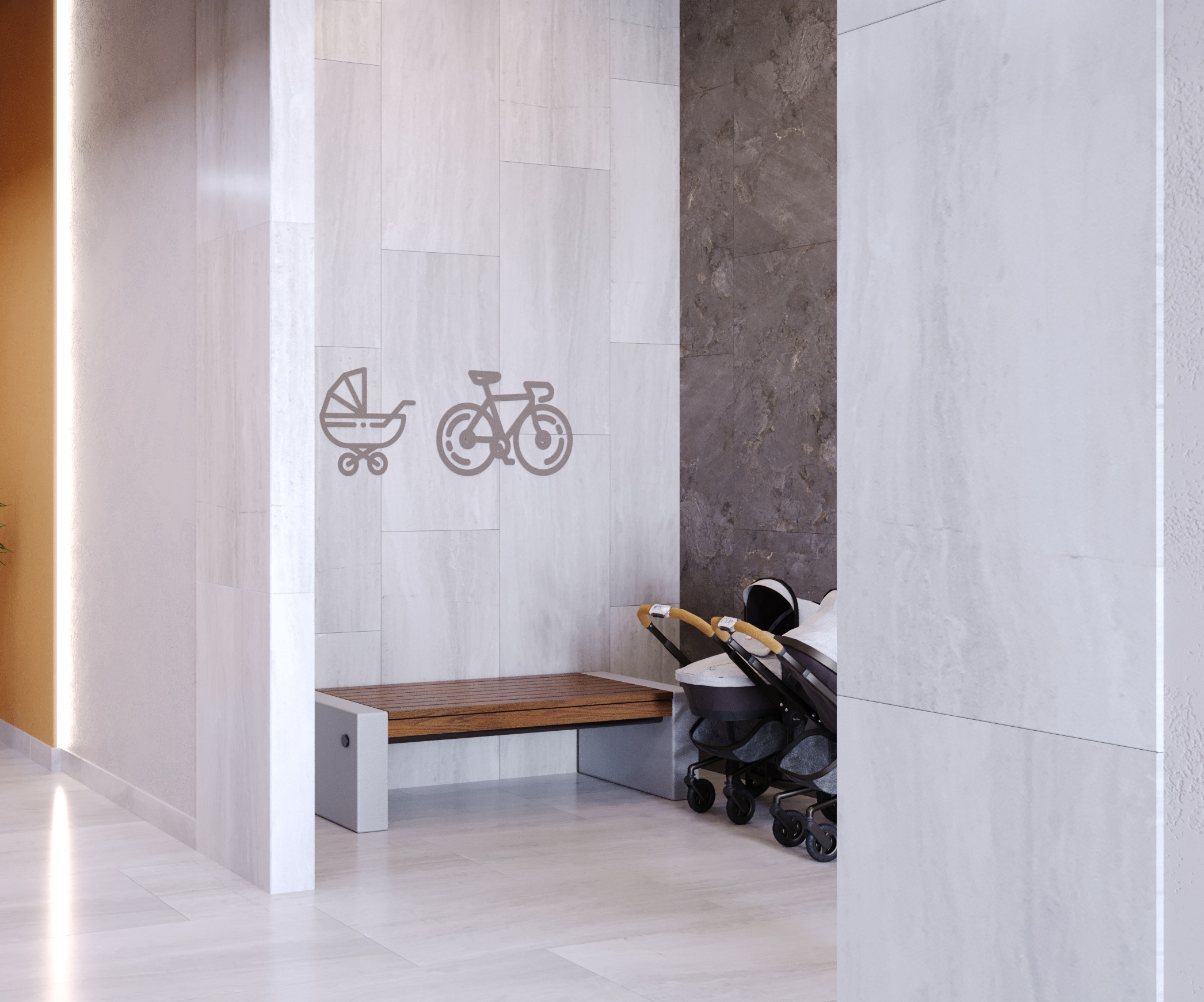 Благодаря организации сквозных подъездов, в проекте реализована концепция «Двор без машин», что наилучшим образом отвечает современным тенденциям расстановки приоритетов на качестве жизни и безопасности. Транспортные проезды и парковочные пространства отделены от детских и спортивных площадок и мест отдыха взрослых.
