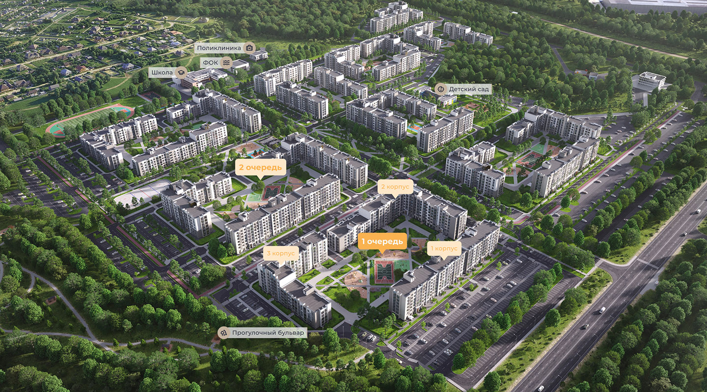 Жилые кварталы «Мега» — это современная квартальная застройка домов комфорт-класса, со всей необходимой инфраструктурой, функциональными планировочными решениями, современной архитектурой домов и единой концепцией. Общая площадь застройки около 50 га. На территории микрорайона расположатся новые: школа, детский сад, поликлиника, ФОК, магазины и торговые центры.